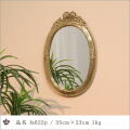 ミラーの大きさが幅17.5センチ、高さ26センチとあまり大きくはありませんがお顔全体は映せますしどこにでも気軽に設置できるサイズです。色はいわゆる「黄銅色」でゴールドに比べると色調には鈍さがあり、この鈍さが派手になりすぎることを抑えある種の趣きを与えています。因みに材質は真鍮。岡本鏡店がイタリアから直輸入しお届けしていますので価格もとてもお手頃だと思います。